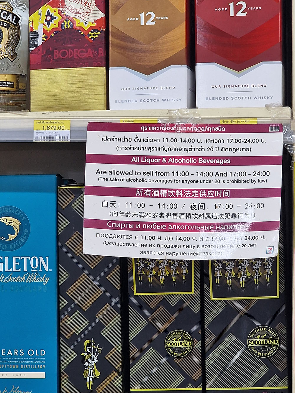 For a long time, alcohol sales in Thailand were allowed only from 11:00 to 14:00 and from 17:00 to 00:00. On November 8, the authorities announced a tightening of the law: from 14:00 to 17:00, even holding alcohol in hand was prohibited, and violations were punishable by a fine of 10,000 baht or more.