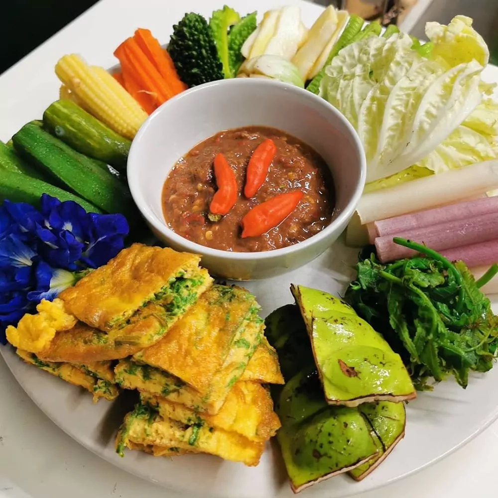 Moo Hong — tender, spicy, and perfect. Pad Pak Miang with prawns is a refined classic, while the dry curry with crispy pork is a special treat for those who are not afraid of bold flavors. And the chili dip with dried shrimp is a true local rarity worth trying at least once.