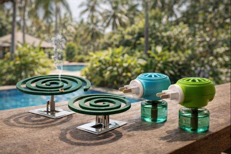 - Mosquito coils and fumigators. These can be bought at any supermarket or pharmacy. Coils repel mosquitoes outdoors, while electric fumigators are used indoors.