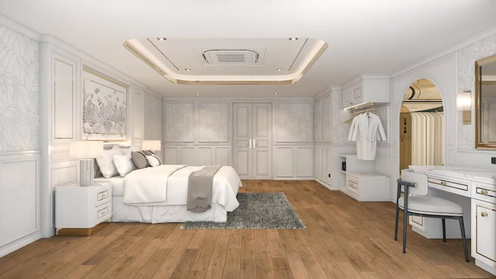 The hotel offers three accommodation categories: apartments, VIP suites, and penthouses.