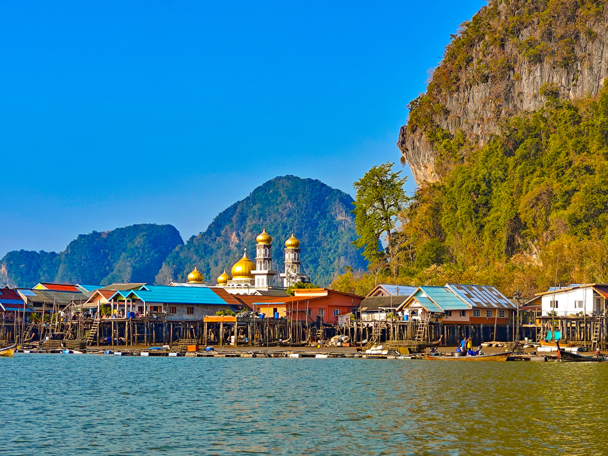 The Sea Gypsy Village is located in Phang Nga Bay. The easiest way to visit is as part of an organized tour.