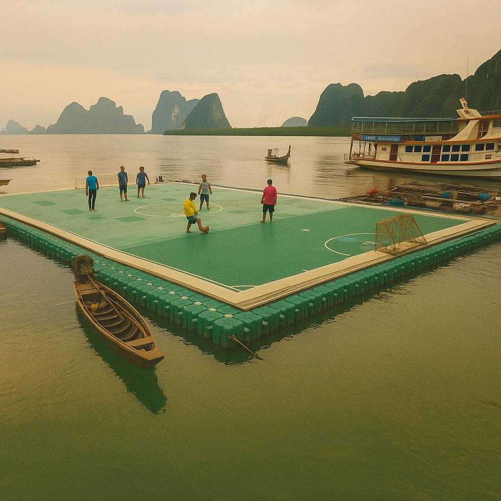 The first football field appeared in the Sea Gypsy Village in 1986, when local kids, inspired by watching the World Cup, decided they wanted to play football too. And even the fact that the entire village stands on stilts didn’t stop them. Using makeshift materials, they built their own floating field. At first, it was just a wooden platform, but today Ko Panyi has a full-fledged football field with a proper surface.