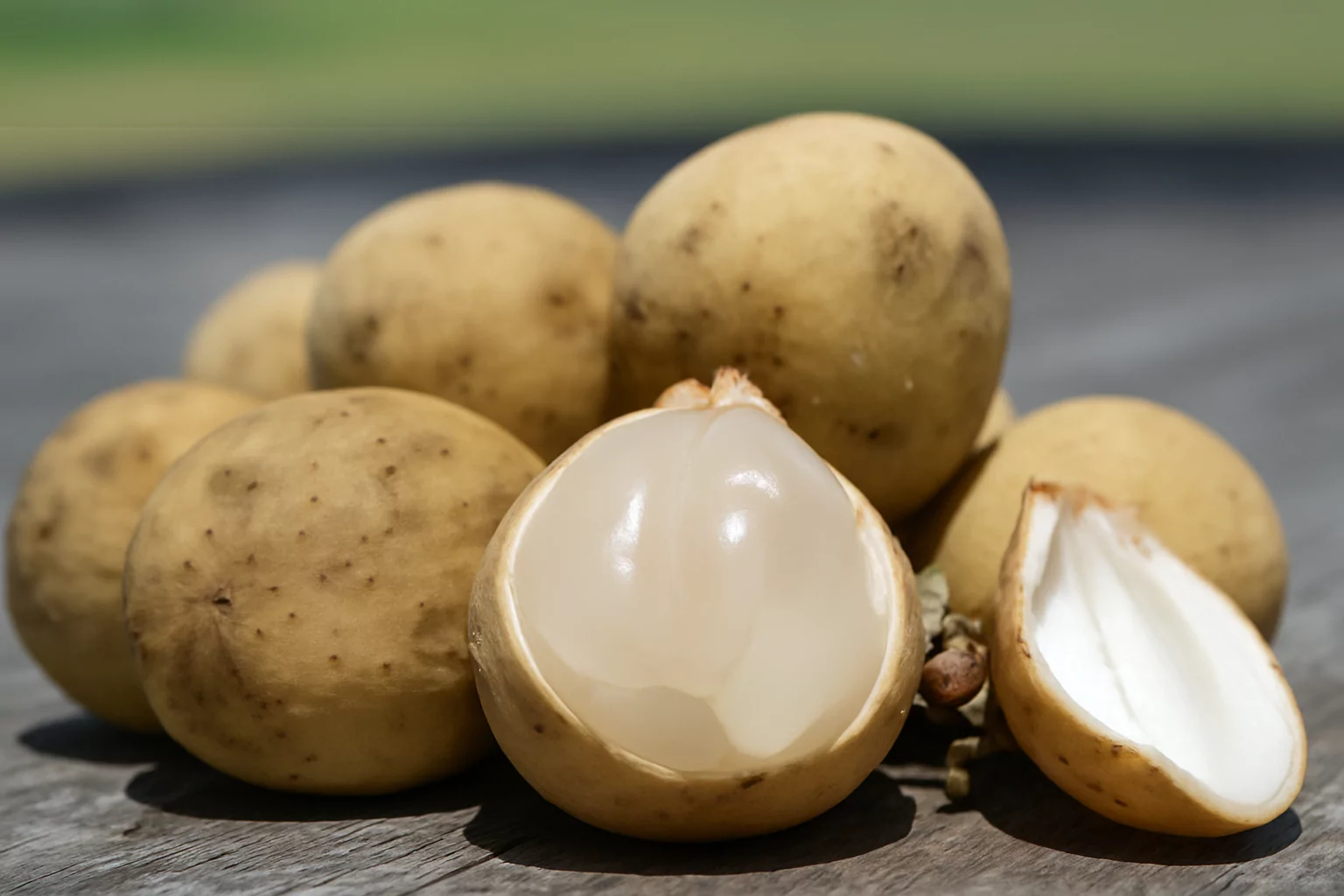 The longkong season in Thailand ends in November. This fruit grows in clusters, with thin skin and white, juicy flesh that has a subtle smoky sweetness.