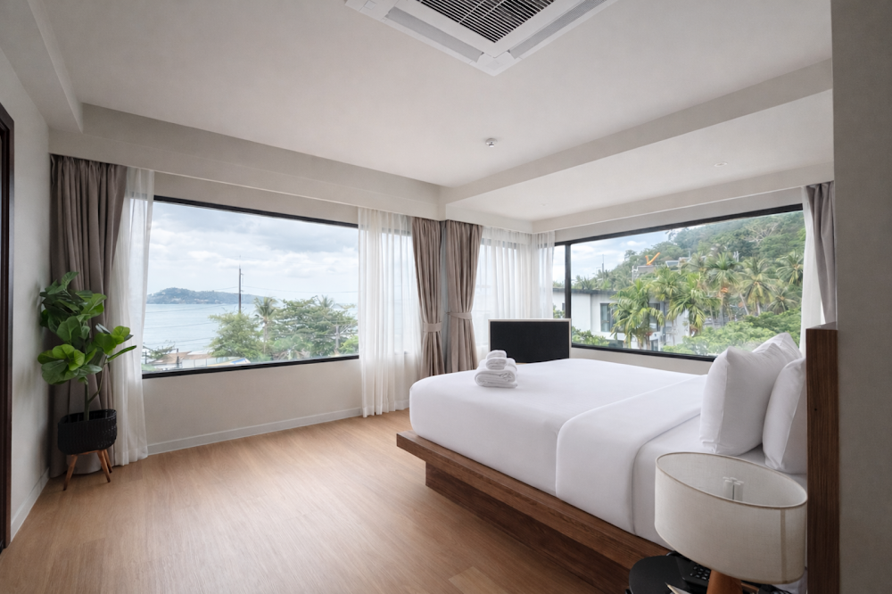 Aqua Maya Phuket is a new, cozy hotel in a quiet part of Patong, close to Kalim Beach. It’s easy to switch from the city buzz to true relaxation here: the surroundings are calm, yet getting to the livelier areas is straightforward by transport. A 7‑Eleven is just a couple of minutes away on foot, and there are nearby spots perfect for watching beautiful sunsets.