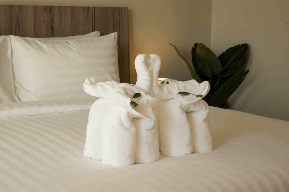 The rooms are neat and thoughtfully arranged — clean, comfortable beds, and crisp white towels and linens that are refreshed regularly. Some room types offer sea and beach views. For a relaxed evening in, you’ll find a TV with Netflix and other apps.