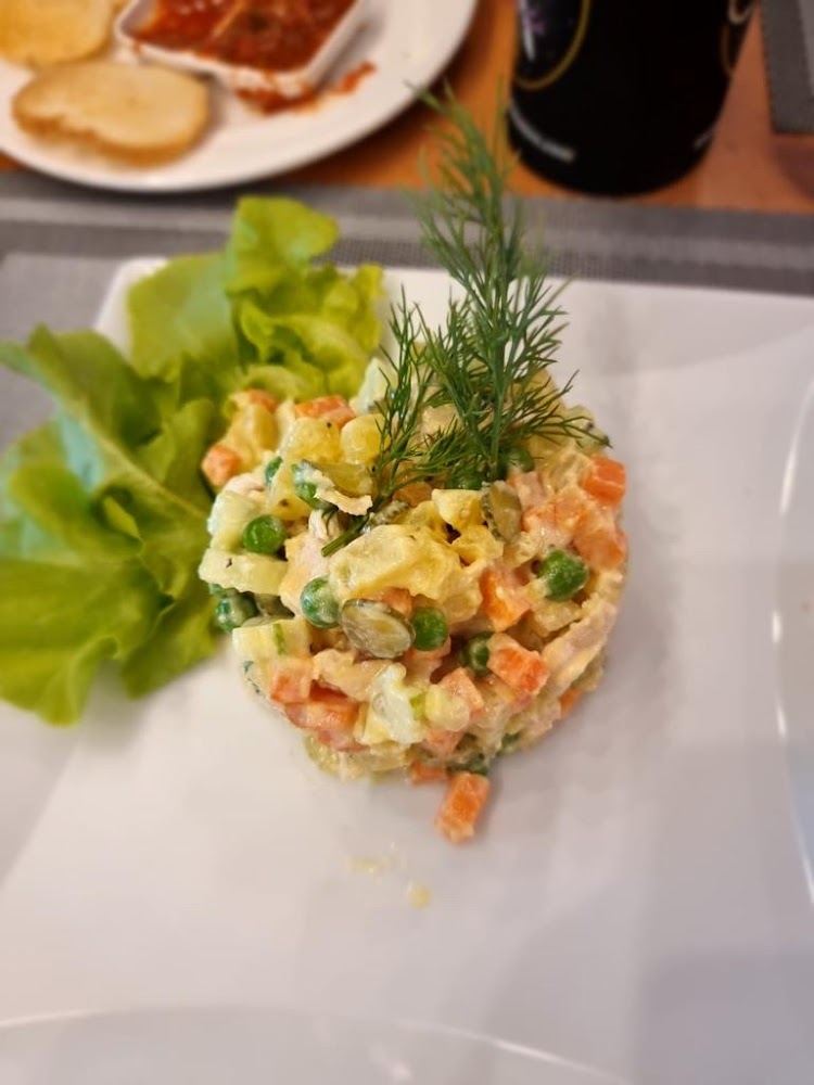 The menu is international, combining Thai, Turkish, and Russian dishes in one place. You’ll find Tom Yum, green curry, seafood, and a range of kebabs, along with comforting Russian favorites like okroshka and homemade-style pelmeni. The pizza is especially worth trying — Margherita and Four Cheese are popular choices, and many guests order them to take away.