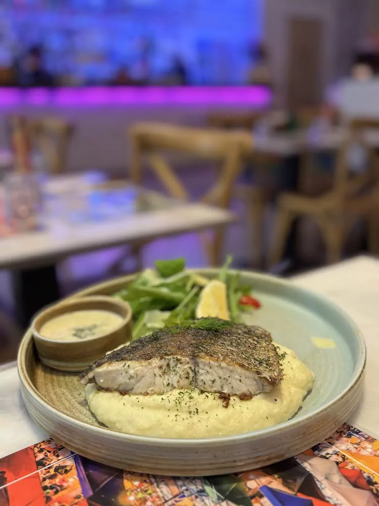 Its biggest advantage is a large Thai and international menu, with clear descriptions and photos. You’ll find rich, flavorful curries (Massaman, Panang, and green), pad thai, and tom yum that’s genuinely spicy, along with crispy spring rolls, som tam, satay, morning glory, and gyoza. Seafood options are also popular, including seabass dishes and pineapple fried rice with shrimp or crab. If you’re not in the mood for Thai food, there’s pasta (including carbonara), Greek salad, steaks — even a tomahawk — and thin-crust pizza with a crisp base. Drinks include cocktails, smoothies, Thai milk tea, and wine; chicken and beef are available in halal versions.