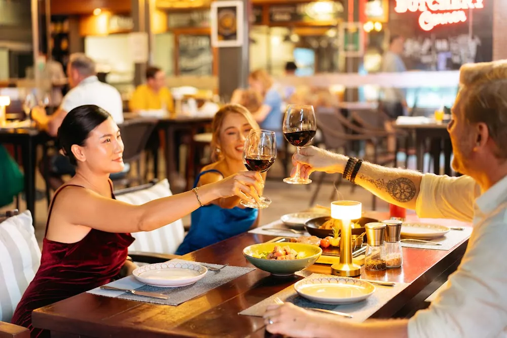 The menu mixes European and Asian favorites. Expect seafood and pasta, a tuna salad, a club sandwich, and a well-executed Margherita pizza with good dough and sauce. There are also steaks, including Australian beef and wagyu. Portions are generous, flavors are well balanced, and dishes aren’t over-salted. A simple lunch or dinner for two adults and two children typically comes to around 1,000–1,500 THB.