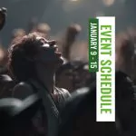 On this page you can find the schedule of concerts. All events are arranged in chronological order. Regular events (sports, dance, shows, dinners, and parties) are listed on the regular events page.