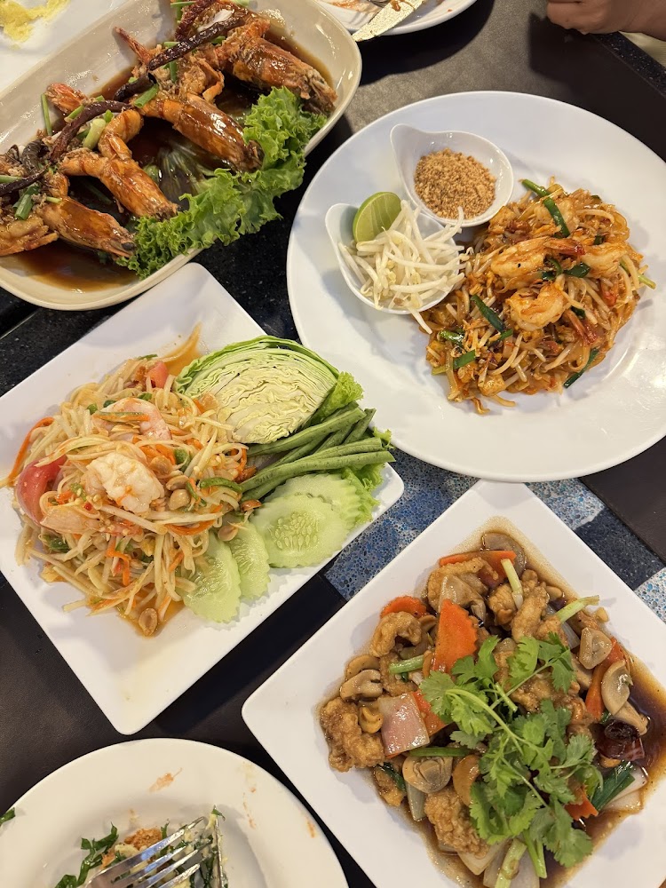 The concept is simple and convenient: Italian pizza and Thai favourites on one menu. They serve crisp, generously topped pizzas (including Salsiccia, Hawaiian, and Margherita), along with pasta and burgers. The Thai selection is consistently strong too: som tam (green papaya salad), shrimp fried rice, pad thai, tom kha, massaman curry, chicken satay, basil stir-fries, and seafood — squid is a particular highlight. There are vegetarian options, cocktails and cold beer, and desserts such as banana with coconut. Plates are neatly presented, flavours are bold, and the food isn’t overly greasy or heavy on pungent spices.