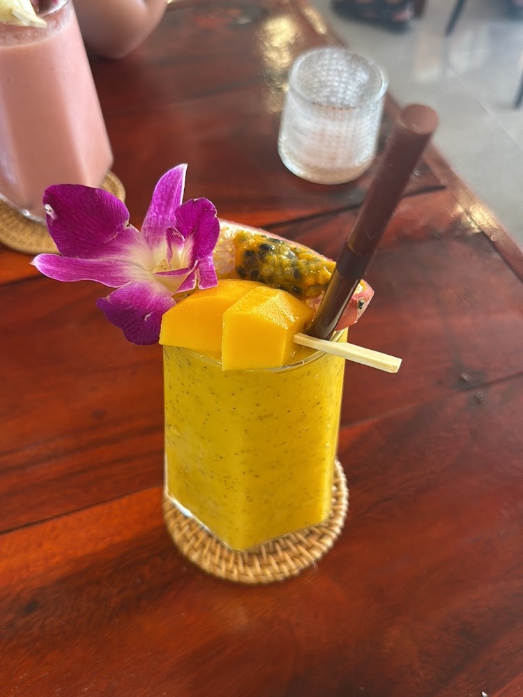 The bar holds its own: cocktails and smoothies are given the same attention to taste and presentation, with fruit-based options — especially the mango smoothie — standing out. Prices feel reasonable for a tourist area, with many dishes typically in the 100–200 THB range.