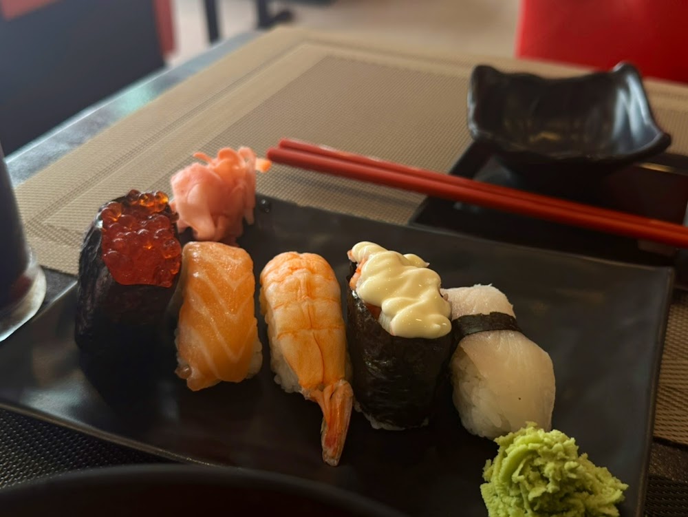 One of the standout sections is the sushi rolls: you’ll find hot rolls with a crispy exterior and a tender filling, as well as classic salmon rolls. They come with ginger, wasabi, and soy sauce with the right, not-too-watery consistency. Portions are generally generous, service is quick, and the drinks list includes fruit mors (berry drink) and strong spirits.