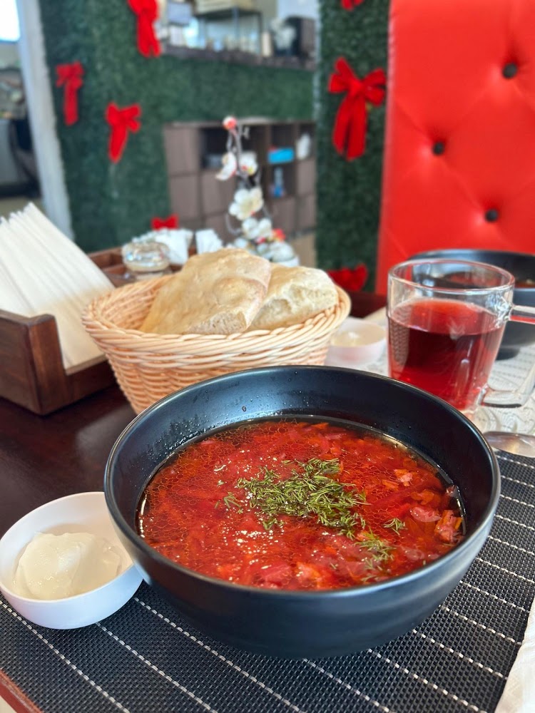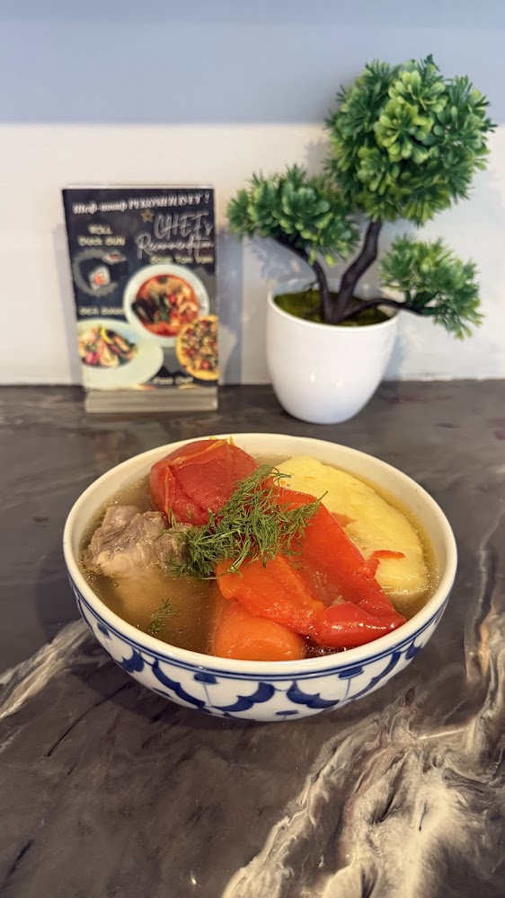 “Potato” in Phuket is a casual café serving familiar comfort food for anyone tired of Thai heat and craving proper Russian-style cooking. The menu covers the classics — borscht and okroshka, chicken soup and goulash, Olivier salad, dumplings (pelmeni) and chebureki — along with rustic-style potato wedges and a selection of wok dishes. For variety, there are also a few Asian options such as tom yum, ramen/udon, and seafood noodles.