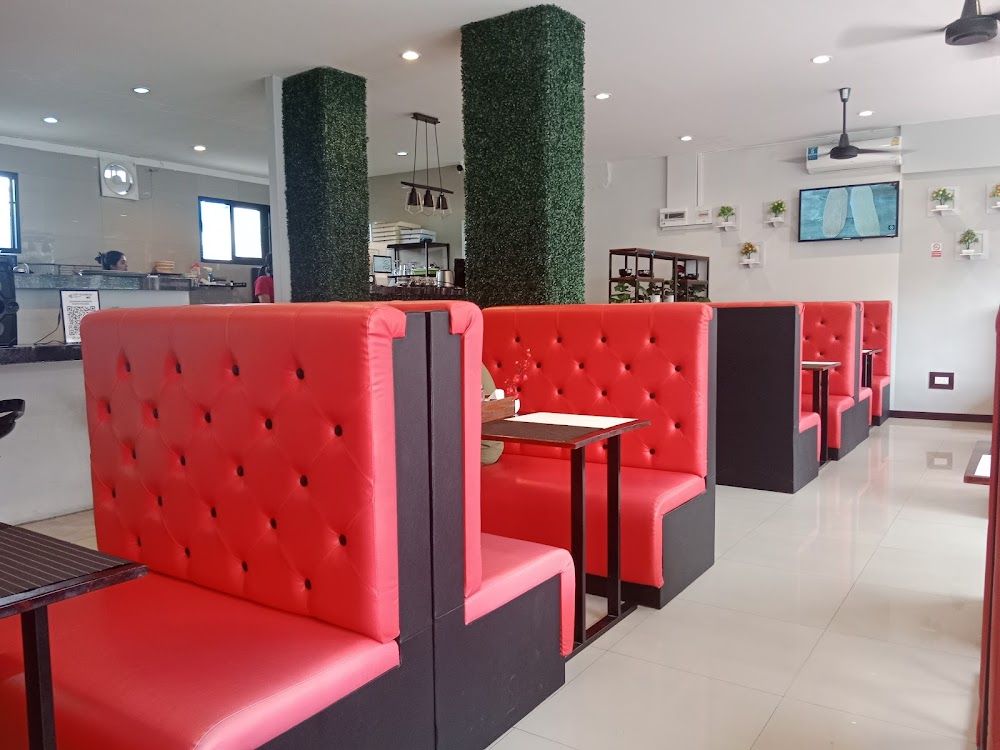 The dining room feels calm and inviting — clean, tidy, with neat furniture, pleasant music, and friendly staff. That said, quality can be inconsistent with certain items: shurpa, plov, mashed potatoes, some wok dishes, and the pizza may disappoint, and it can get warm inside at times. Payment is cash-only — bank transfers via QR/“scan” to a Thai account are not accepted.
