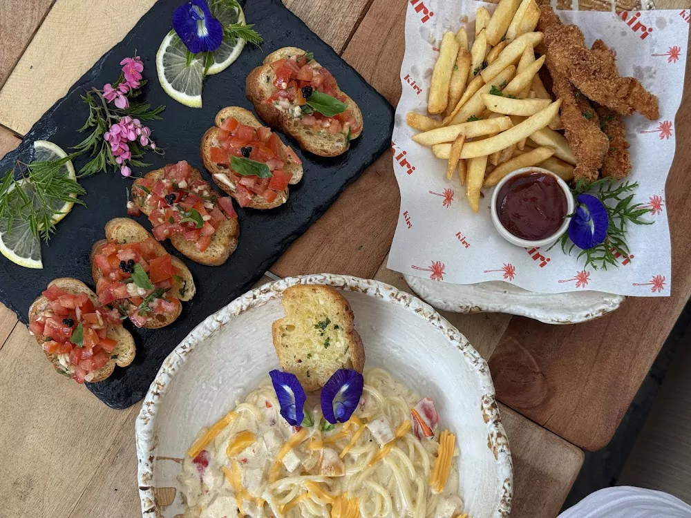 Must-try items include the chef’s signature burgers and the house pizza. Overall, the menu offers something for every taste, from Italian to Indian cuisine. The bar menu stands out with a wide variety of cocktails featuring tropical flavors.