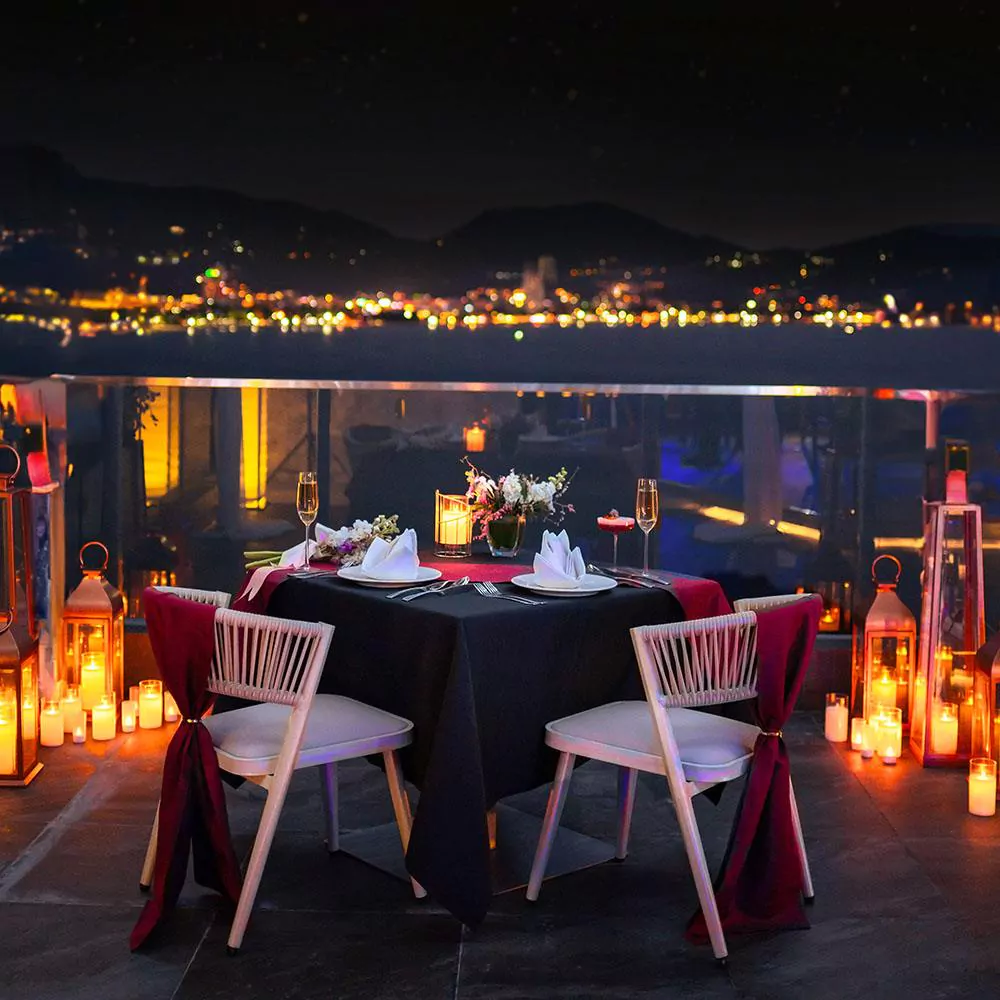 Многие отели 5* предлагают private dining experience прямо на песке, с накрытым белой скатертью столом, свечами, лепестками роз и персональным официантом. Вы приходите якобы "просто на ужин", но в кульминационный момент официант приносит десерт с кольцом или вы сами делаете предложение в идеальной тишине при свете огней и шуме прибоя.