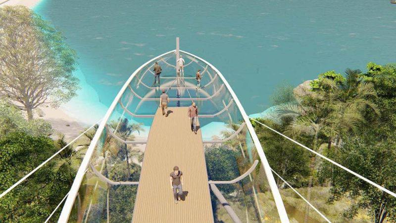 Surin Skywalk должна включать два выносных мостика с прозрачным покрытием, выступающих над морем. Первый должен будет выступать на 40 м в сторону моря и возвышаться над водой на 50 м, второй – выступать на 8 м и находиться в 20 м над водой.