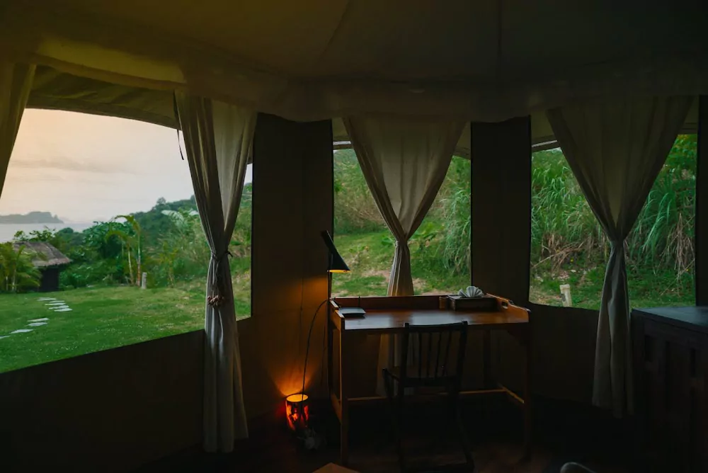 9 Hornbills Tented Camp — камерный глэмпинг рядом с Пхукетом, на тихом острове Ко Яо Ной, с панорамой залива Пханг Нга и известняковых островов на горизонте. Здесь легко «отключиться» от суеты: вокруг джунгли, вечерние звуки природы и птицы-носороги, а вместо телевизора — рассветы и закаты над водой.