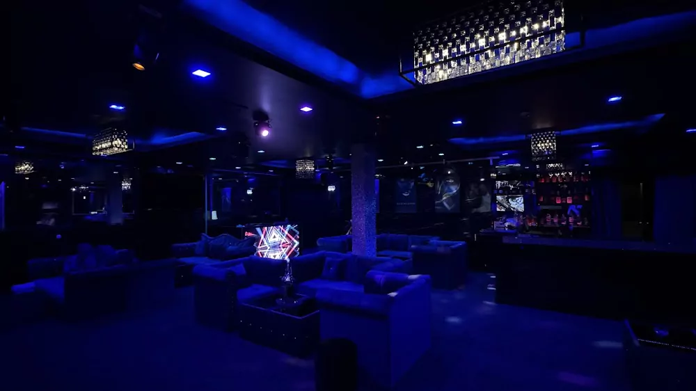 В заведении есть бассейн с подсветкой, где можно освежиться между песнями, а также зоны отдыха и номера. Для компаний доступны VIP-столы/кабинки. Барная карта радует коктейлями и классическими напитками; дополнить вечер помогает кальян.