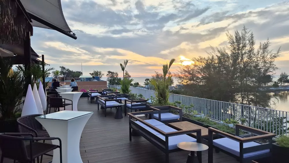 Halo Rooftop Bar на Пхукете расположен на крыше 6-го этажа и даёт то самое ощущение «выше города»: меньше суеты, больше воздуха и открытое пространство с удобными зонами для отдыха. Вечером здесь особенно красиво — тёплая подсветка, аккуратный интерьер и мягкая подача создают спокойную, собранную атмосферу без лишнего шума.