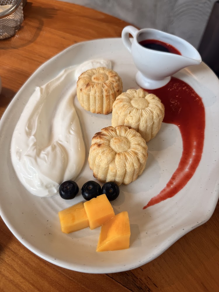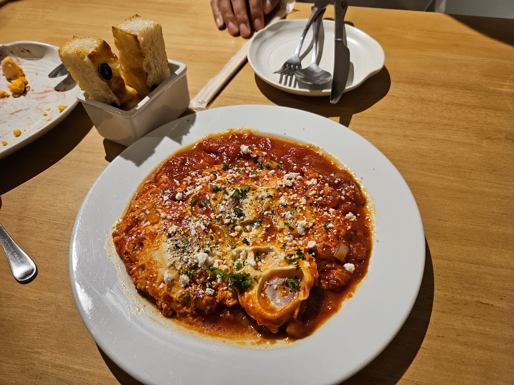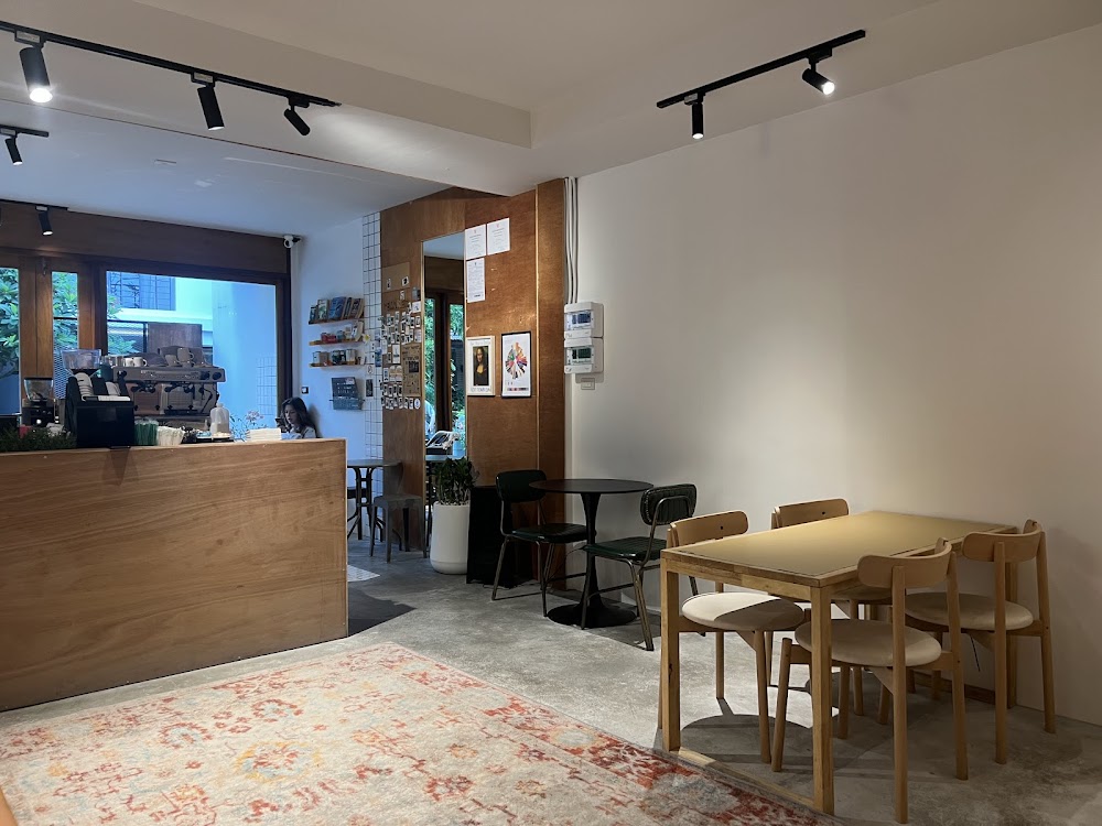 Еда ориентирована на европейские завтраки и понятный комфорт-фуд: шакшука (включая сырную), омлеты, кабачковые оладьи, хашбрауны, круассаны, каши (например, манго-кокос). Есть и позиции вроде роллов «Филадельфия» и суши, а также продукты/еда в русском стиле; доступна оплата в рублях по QR-коду. Небольших собак пускают при условии переноски или коляски, для неспешных встреч есть книги и настольные игры, иногда проводят закрытые вечеринки и after-party.