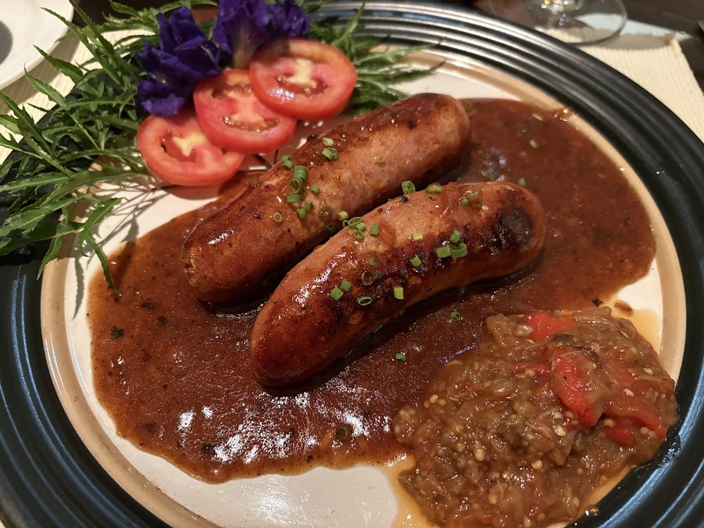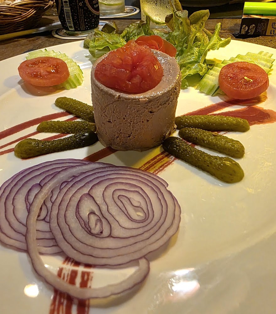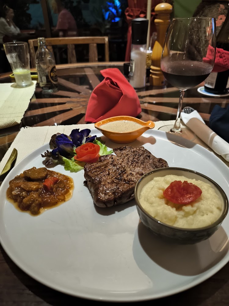 Кухня строится на сочетании домашней французской классики и тайских блюд, поэтому за одним столом легко собрать любителей и стейков, и карри. Меню объёмное: тартар внушительного размера, рибай с запечённым картофелем и овощами, утка, рыба, крепы, лягушачьи лапки, а также террины, паштеты и колбаски собственного приготовления. Порции щедрые, ингредиенты добротные, подача без лишнего пафоса — ближе к бистро, но с аккуратным французским этикетом.