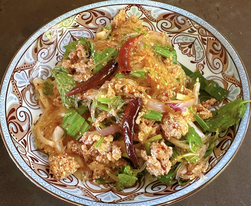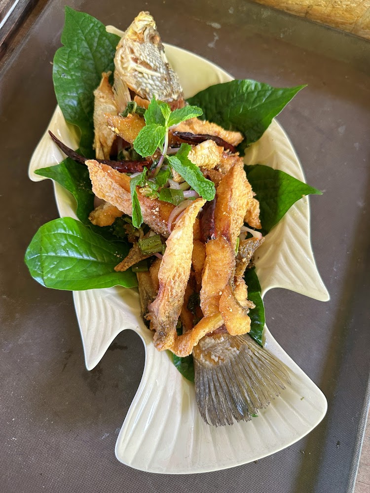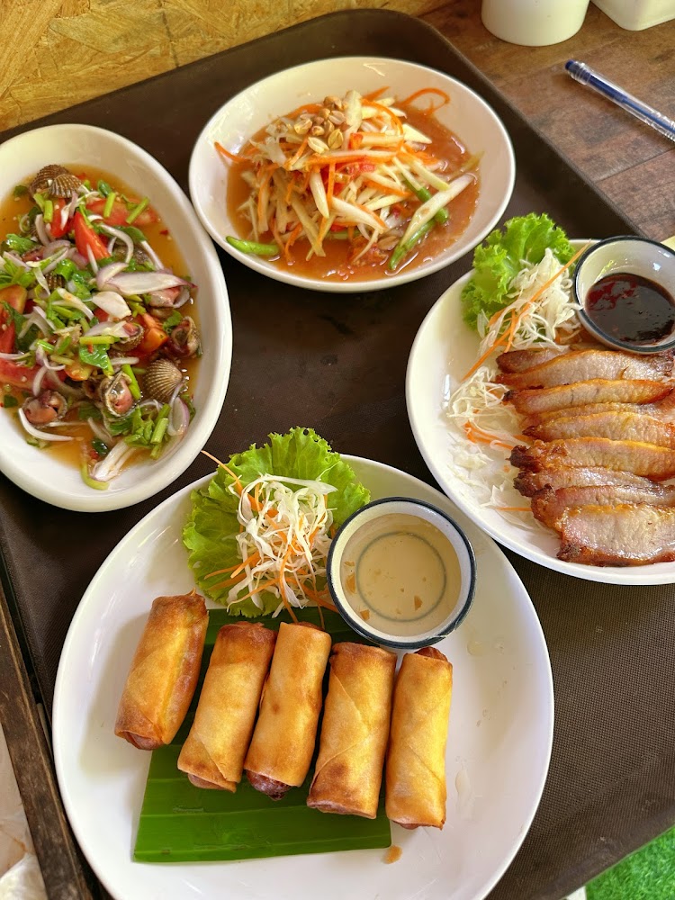 Кухня здесь тайская, с акцентом на яркие, «домашние» вкусы и свежие ингредиенты. Меню большое, уровень остроты регулируют — от мягкого «фаранг» до по‑исаански жгучего. Фирменная сторона — сомтам: папайя-салат с крабом, с ферментированным рыбным соусом, варианты с тонкой лапшой; также удаются салаты с креветками и свиной шеей, курица панэнг, рис с креветками и ананасом, жареная рыба с травами, блюда на гриле и клейкий рис. Из напитков хорошо заходят кокосовый смузи, арбузный смузи и мохито.