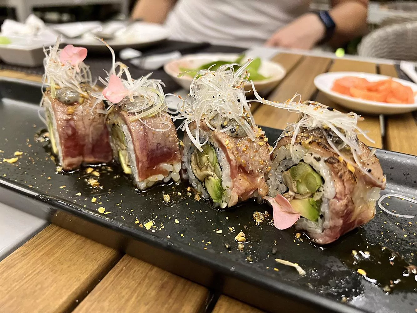 Настоящее кулинарное торжество для любителей суши и роллов с большим разнообразием блюд и даже веганским кето-меню. В ресторане есть как любимые всеми классические позиции, так и другие интересные варианты. Сервис в Sushi Paradise дружелюбный, а цены разумные. Обстановка в корнере очень приятная, особенно красиво смотрится облако из нежных цветов, которое располагается наверху. Можно сесть на улице. Цена на человека: 500–600฿. Находится в ТЦ Robinson Thalang.
